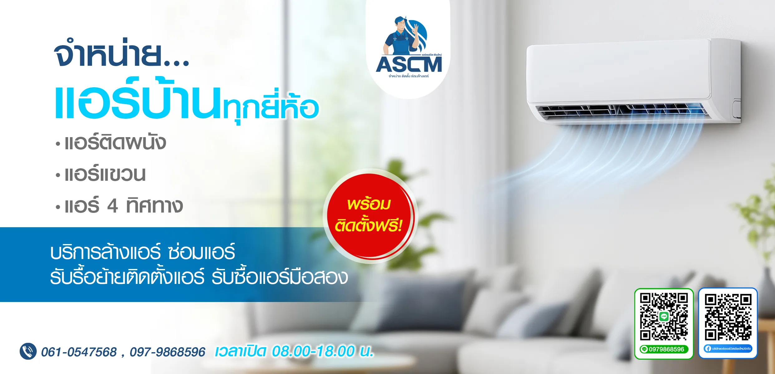 จำหน่ายแอร์บ้านทุกยี่ห้อพร้อมติดตั้ง แอร์แขวน แอร์ 4 ทิศทาง บริการล้างแอร์ซ่อมแอร์ รับรื้อย้ายติดตั้งแอร์ รับซื้อแอร์มือสอง